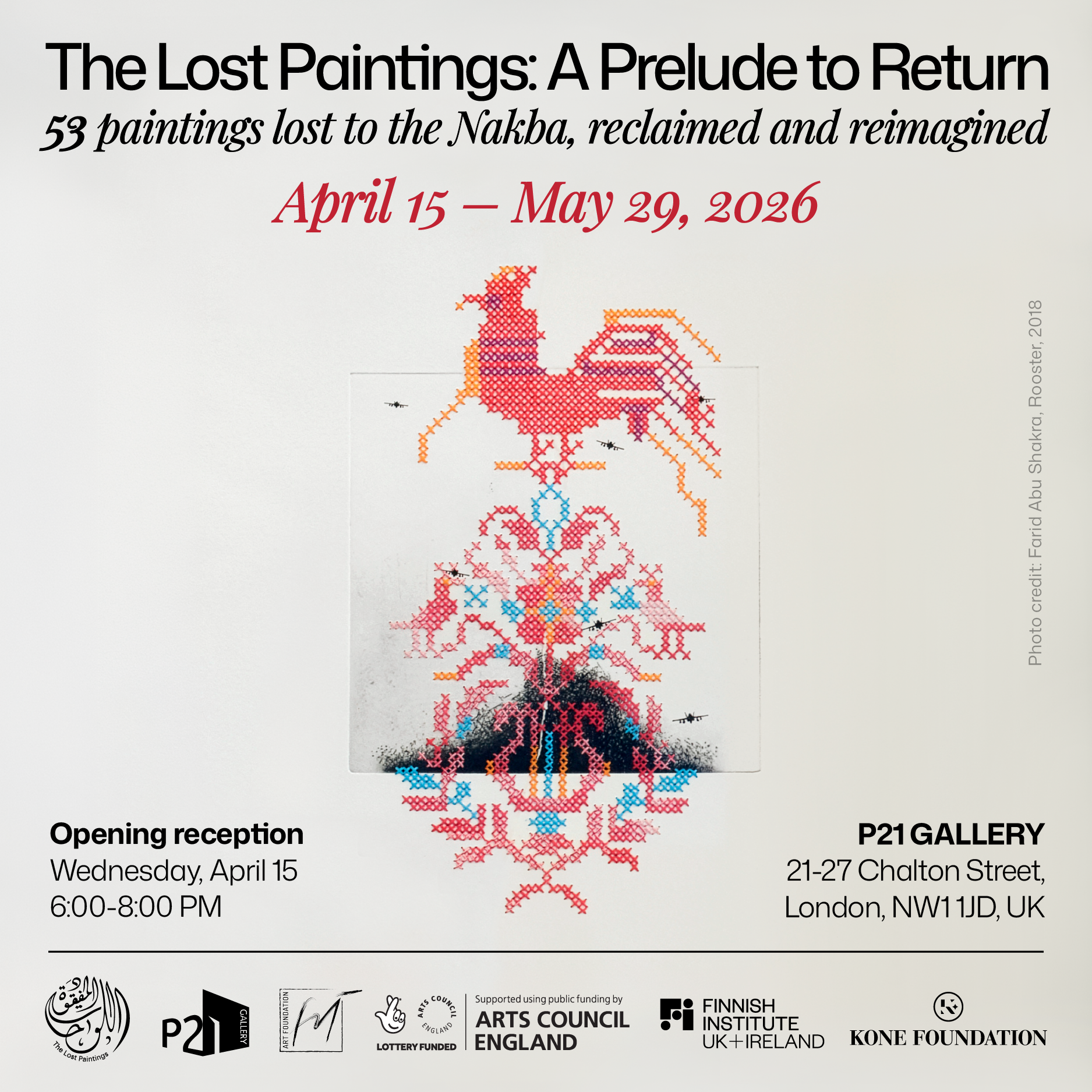 Fri, April 17, 6:30pm - 8:30pm: Gallery talk with artists Antoine Elias Raffoul and Aya Abu Hawash and curators Rula Khoury, Joëlle Tomb and Haidi Motola